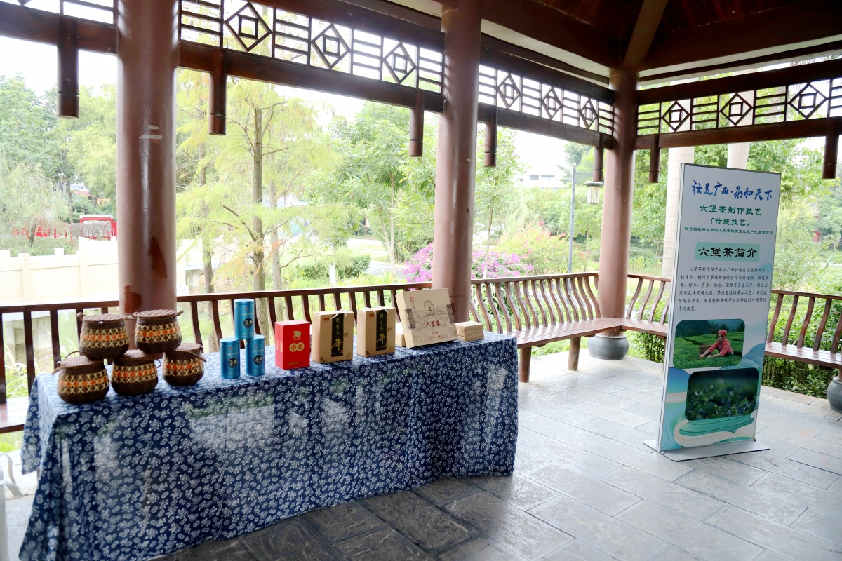 在“壮美广西·茶和天下”茶文化宣传展示区,为庆祝六堡茶制作技艺和瑶族油茶习俗列入联合国教科文组织人类非物质文化遗产代表作名录,特别设计了中国茶文化源远流长的历史场景,在琴箫和鸣中,可欣赏国家一级茶艺师覃聪聪团队的六堡茶冲泡技艺和宋代点茶的茶艺展示,品茗六堡茶的甘香,了解国家级非遗代表性项目坭兴陶的茶具。