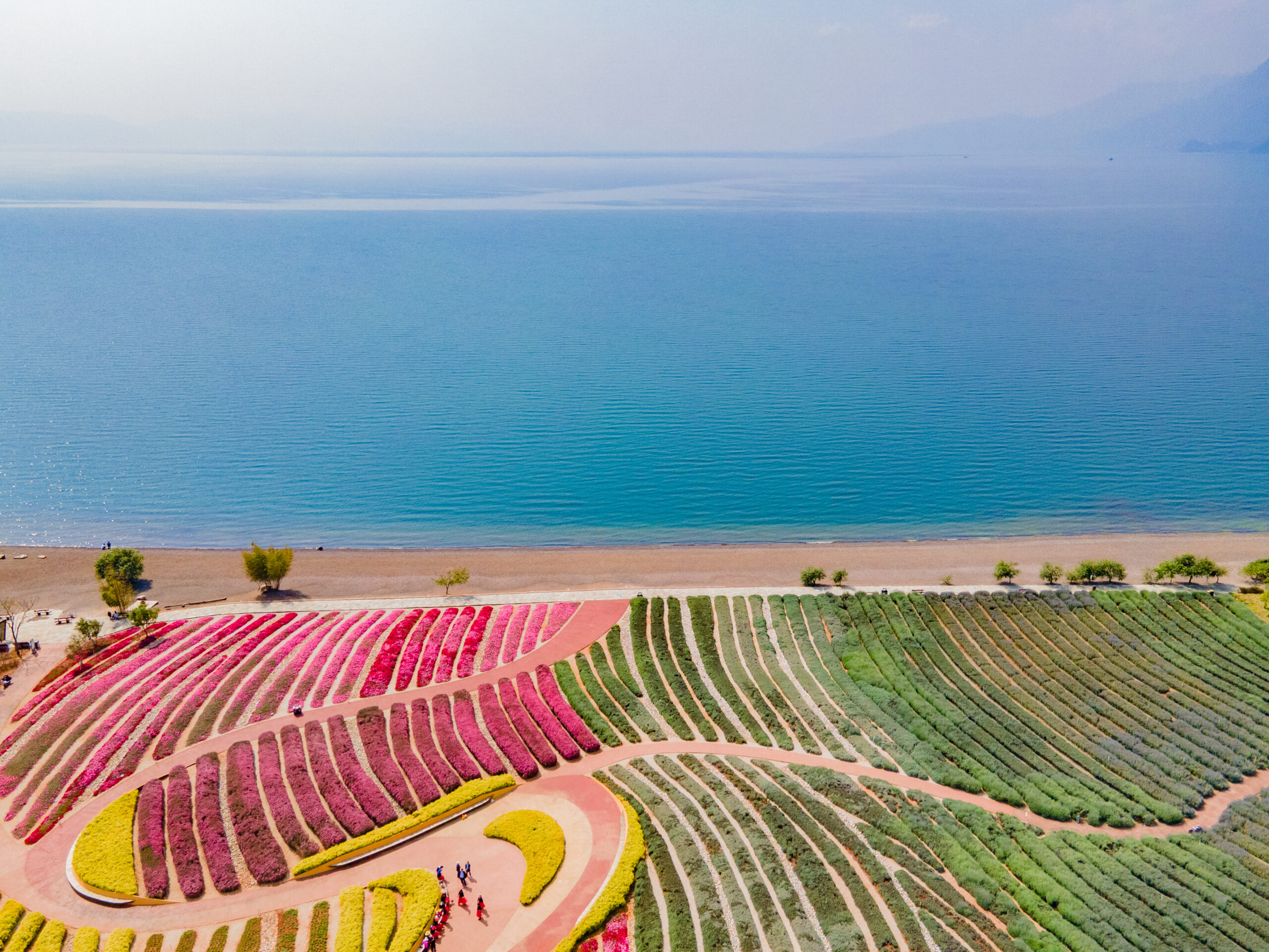 就像此时此刻,我们坐在抚仙湖畔,头顶是阳光,脚下是花海。云南不同的地方,一年四季都鲜花盛开,这些花传递的是一种温暖,一种爱,更是一种叫云南的生活。