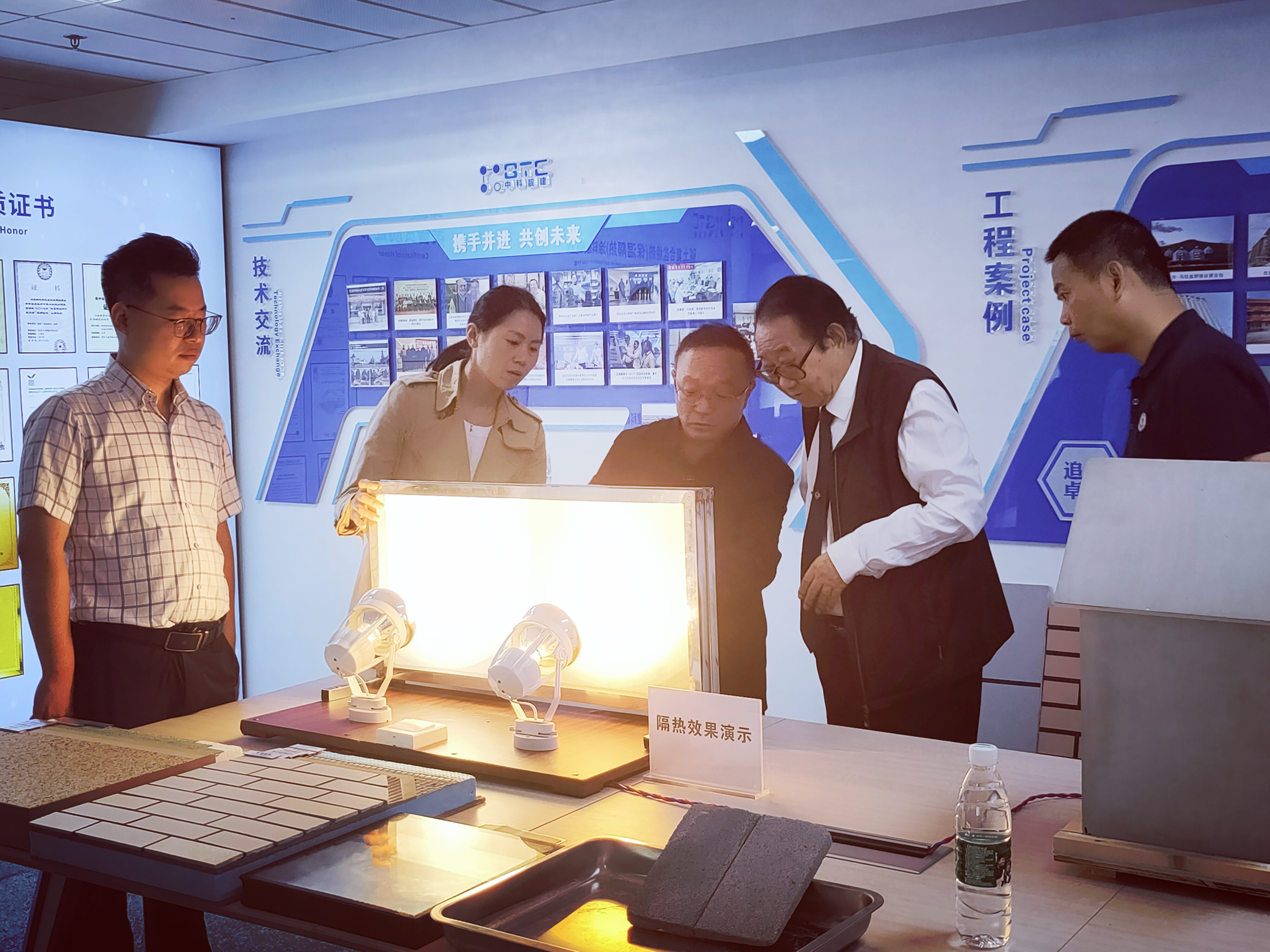 陈祥福院长一行参观了解了企业的生产工艺、产品性能、市场应用等情况。企业核心产品绝热(保温隔热)低碳涂料技术荣获住建部颁发的“华夏建设科学技术奖”,并于2022年12月列入国家生态环境部发布的国家重点推广的35个低碳技术之一,同时中国生态环境部将产品作为代表中国先进低碳科技的16个技术之一,在2023年11月迪拜举行的第二十八届联合国气候变化大会 (《联合国气候变化框架公约》第二十八次缔约方大会COP28)上将进行推广。陈祥福院长对中科靓建公司在新型建筑保温节能材料领域取得的成绩表示肯定,并对企业在产品研发、技术创新、市场拓展等方面提出了具体建议。