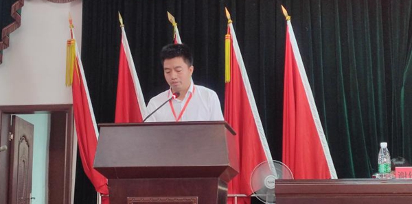 ▲镇人大主席候选人谢伦勇同志作《人大工作报告》。
