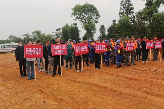 上午9点,由街道应急站、民兵应急分队及蓝天救援队等相关单位和部门、社区(村)112人组成的应急抢险救援、地质灾害排查、水情监测、群众转移等9个小组成员、车辆准时到达蕨根水库演练指定位置,依次接受检阅。