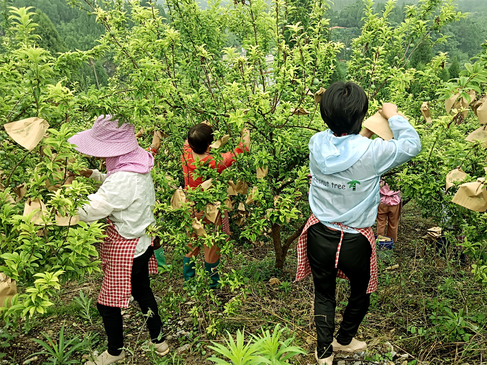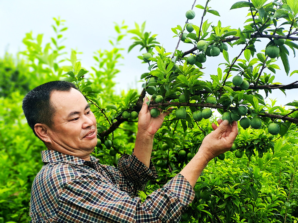 “再过一个月黄金奈李就要上市了。去年因冰雹影响,收入归零。今年奈李结的多,预计可收3万多斤,按市场价10元一斤计算,单奈李就可卖30万余元。”郑志强边给奈李套袋边与笔者交谈。