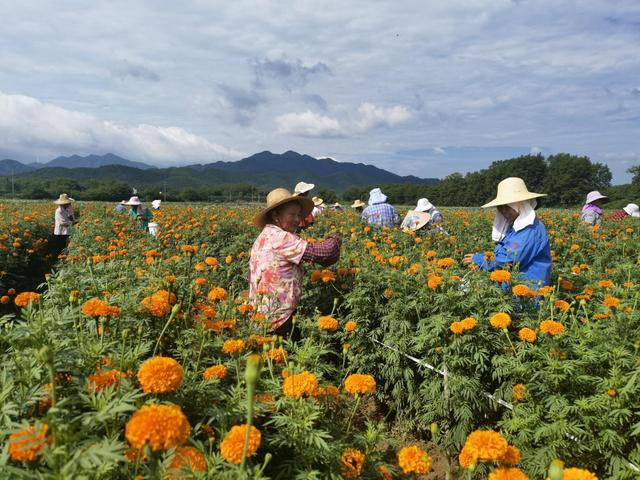 作为特色经济作物,万寿菊是提取纯天然叶黄素的最佳原料,被广泛运用于医药、化妆品等领域,且种植简单,容易成活,花期长达4个月,既可观赏,又可售卖,是名副其实的“致富花”。