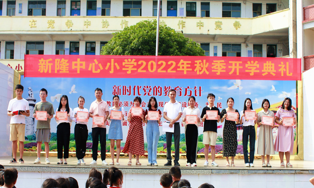 秋高气爽,硕果飘香。9月5日下午,新田县新隆中心校800余师生在该校操场,伴随着雄壮的国歌声和徐徐升起的五星红旗,秋季开学典礼暨庆祝教师节表彰大会拉开帷幕。