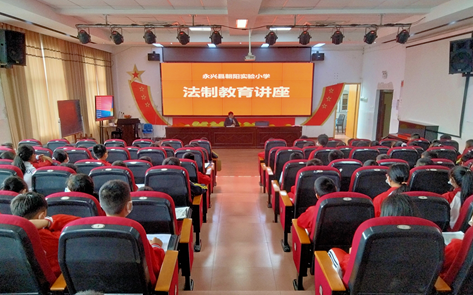 为加强对未成年人的普法宣传、司法保护,营造法治育人的浓厚氛围,守护未成年人健康成长。10月9日下午,永兴县朝阳实验小学开展了一场法制教育讲座。
