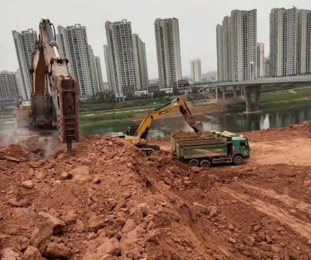 上渡街道沿江路重点项目建设施工现场