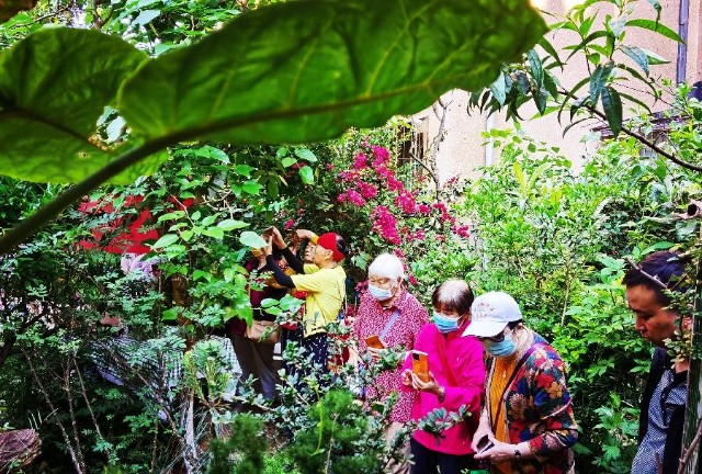 活动中,永兴路社区能人张天福在社区绿色科普园对园中亲手培育的“奇树”进行种植与养护技巧作为重点讲解,通过宣传绿化知识、家庭园艺栽培技术技巧、病虫害防治等,以专业知识结合现场居民在日常养护绿植中遇到的情况同居民现场交流讨论,并解答居民日常养护绿植中遇到的问题。