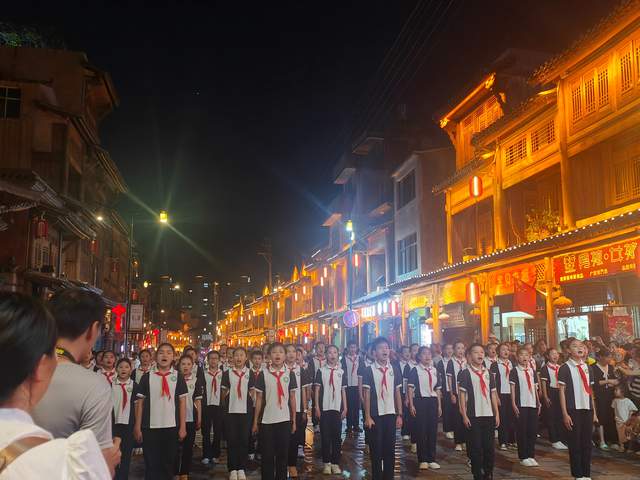 在200多米长的古城南门街上,各学校学生沿街站成方阵,先后以歌舞、朗诵、情景剧等多种形式,演出《少年中国说》《落在生命里的光》《往古来今,薪火相传》《武动青春,强我中华》《四小少年心向党,壮乡儿女梦飞扬》《筑梦青春—沁园春·雪》《万类霜天竞自由》——诵毛泽东诗词、歌唱《强国一代有我在》等多个节目,他们用高亢的歌声、刚劲的舞蹈、铿锵的诵读为祖国喝彩,为青春呐喊。