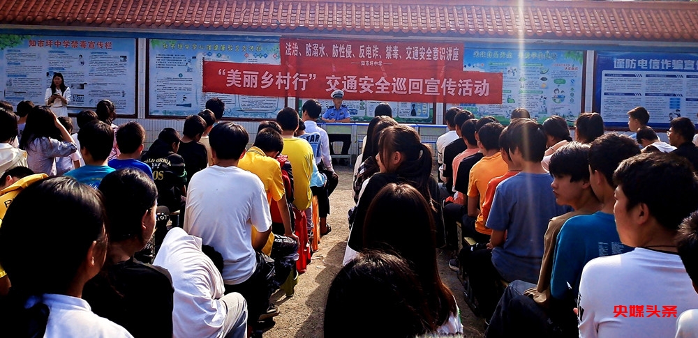 5月18日下午,新田县公安局交通管理大队民警走进国道G234沿线大坪塘镇知市坪中学开展“美丽乡村行”交通安全进校园宣传教育活动,为220余师生送上“交通安全大餐”,引导孩子们养成安全文明的出行习惯。
