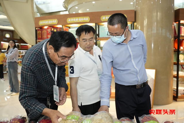 图为采购商与领导嘉宾到河北(保定)品牌农产品展销体验中心选品、品鉴