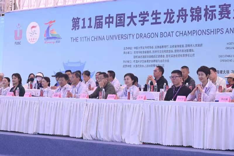 6月17日上午,第11届中国大学生龙舟锦标赛暨第2届昆明滇池国际龙舟争霸赛开幕式在海埂大坝举行。108支参赛队伍、1700余名参赛选手齐聚昆明,在滇池展开精彩的龙舟角逐赛。