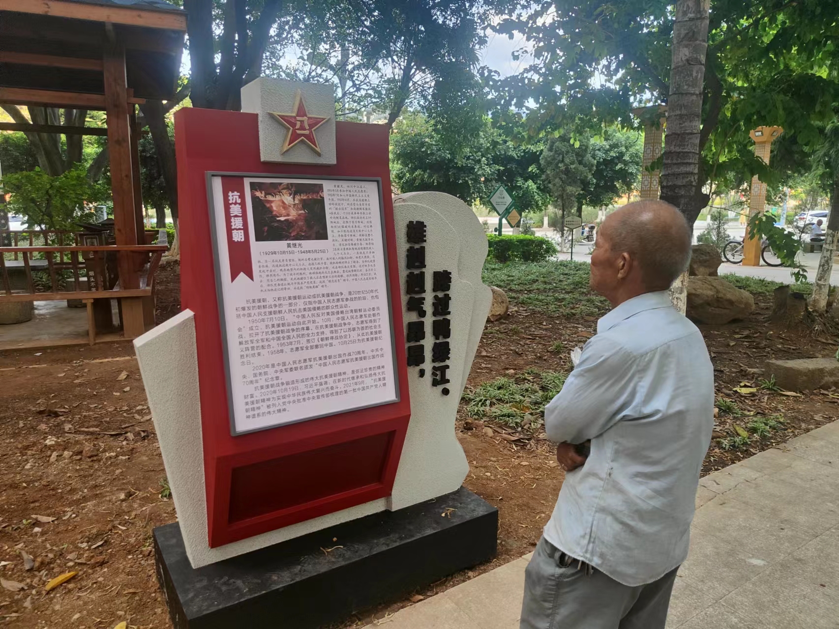 据了解,此次新添爱国拥军宣传栏主要以图文的形式,将“国防重器新旧对比”“抗美援朝”“对越自卫反击战”“6.15中印加勒万河谷边境冲突”等对外军事斗争的缘由及英雄人物作了介绍。