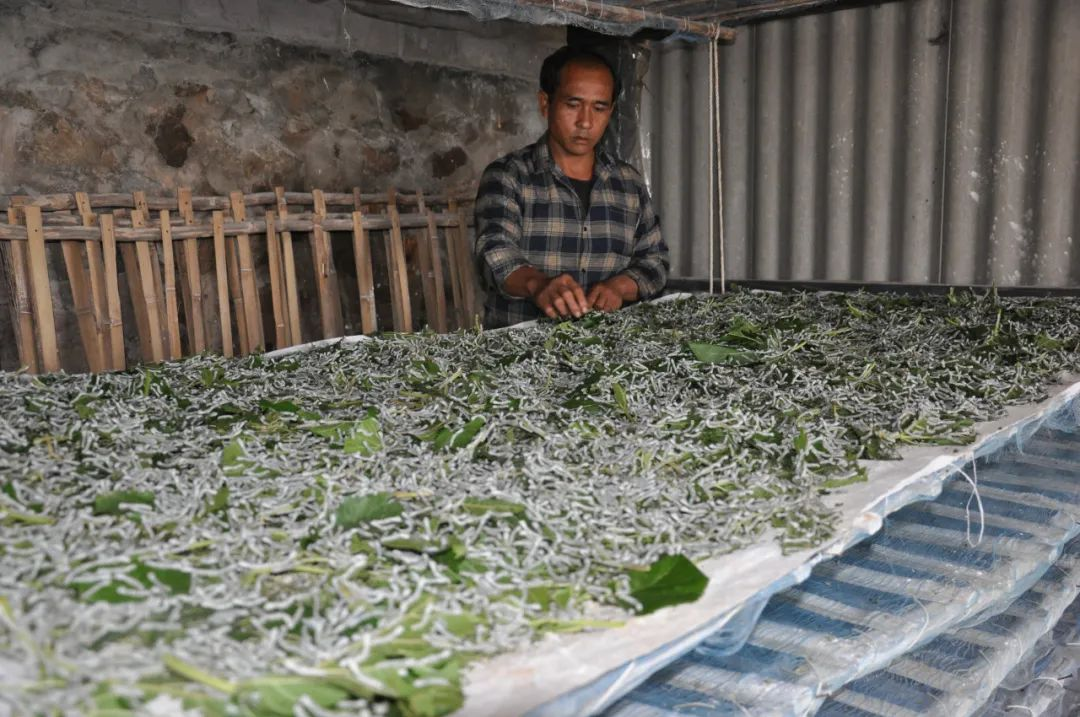 “我家2018年开始发展桑蚕,之后,年年增加桑树种植面积,蚕也一年更比一年养得多。种桑养蚕比种玉米、养猪、养牛、外出打工效益好多了。”云县后箐乡上台村小村村民谢丕恩欣慰地说,现在他家养殖的蚕是今年的第二拨,前一拨已收入5000多元,今年五拨结束,收入可达4万多元。养桑蚕成本低、效益好、见钱快,是最适合农村发展的“短、平、快”产业。