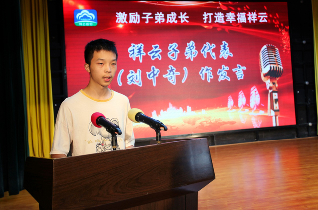 祥云子弟代表刘中奇说道:感谢祥云,不仅给我颁发了金秋奖学金,而且还愿意资助我大学四年的学费。我以后一定会努力学习,报效祖国,回报人民。