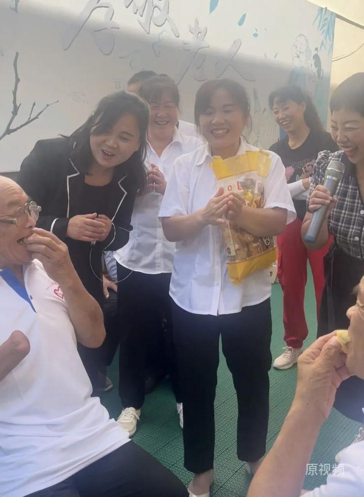 活动最后,在裴院长和工作人员的带领下,玩起了套圈圈和互喂吃小面包的小游戏,爷爷奶奶们都很配合,也很开心,看到他们脸上发自内心的幸福笑容,我们的心也暖了,这就是我们来看望他们的意义,也是爱心之旅,更是对人心的洗礼。