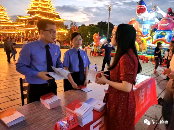 为深入推进《民法典》宣传教育,扩大《民法典》的影响力和认知度。5月30日晚上,湖南省怀化市芷江侗族自治县人民检察院在县鼓楼广场组织开展了“美好生活·民法典相伴”主题宣传活动。