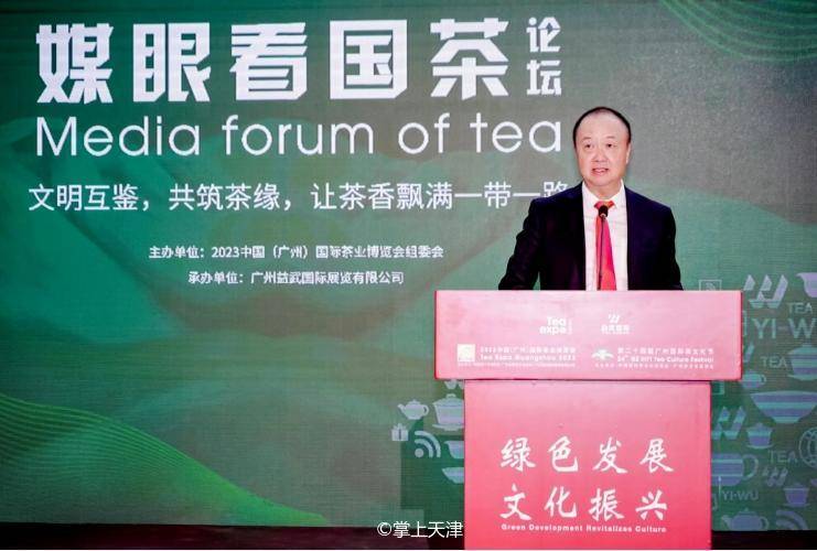 11月24日,2023中国(广州)国际茶业博览会重点活动“媒眼看国茶”论坛在广交会展馆B区10.3馆会议室举行。论坛上,广州益武国际展览有限公司董事总经理李广韬致辞,100多家媒体及中外茶人近200人出席了论坛。
