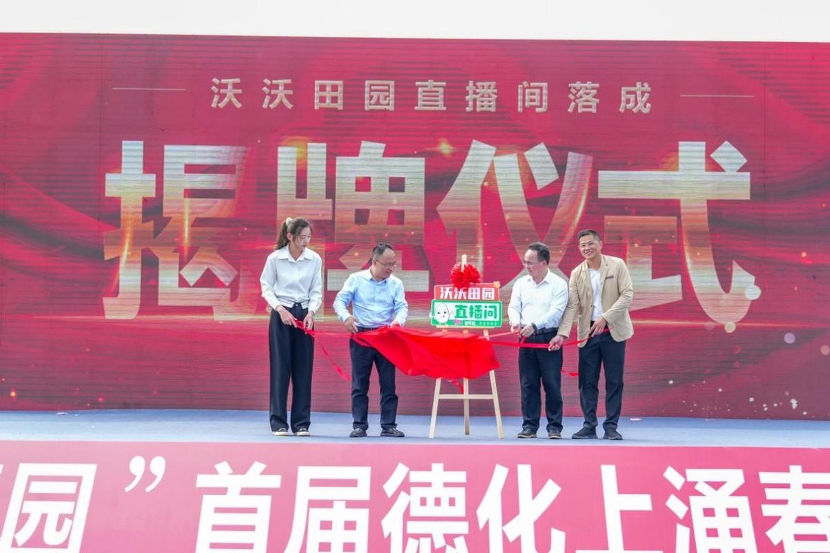 泉州市委办室务会成员、市档案局局长、市档案馆馆长廖晓凌,德化县委常委、组织部长熊建军与基地负责人庄金泉联合为“沃沃田园直播间”落成揭牌。