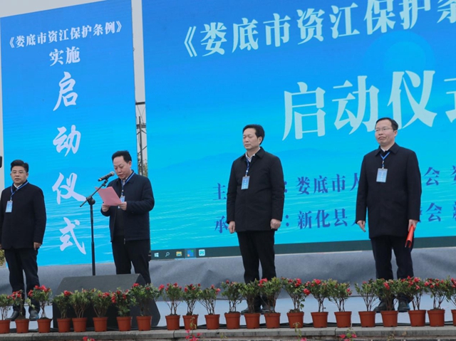 3月1日,正逢《中华人民共和国长江保护法》实施一周年,《娄底市资江保护条例》实施启动仪式在新化县城北塔公园举行。娄底市人大常委会副主任罗孝贵主持、娄底市人大常委会主任戴德清宣布条例实施。