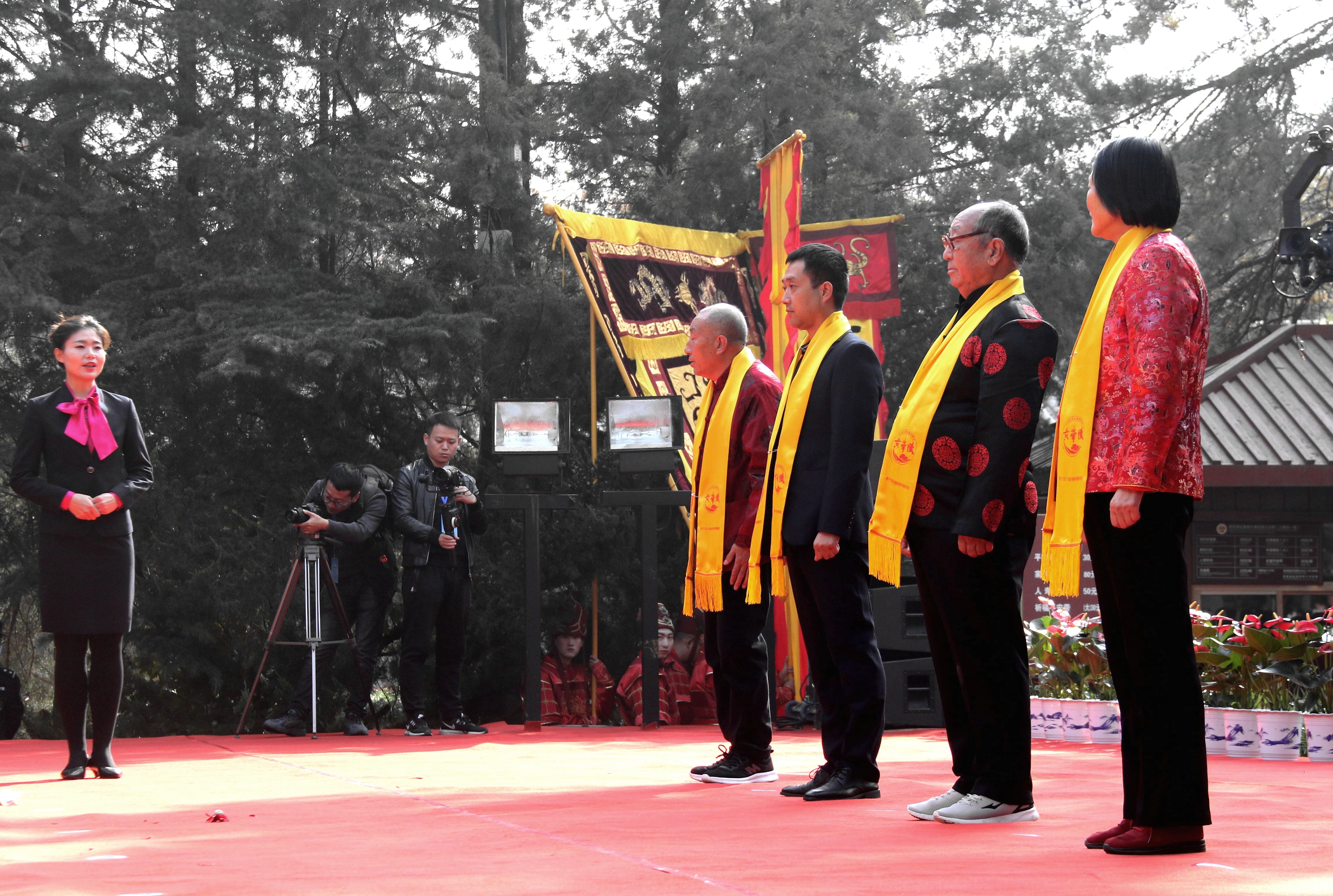 三位民间长者携少男少女敬上高香,体现了中华民族敬老爱幼的传统美德,意寓中华民族承先启后,一脉相传、子孙万代、绵延不断。