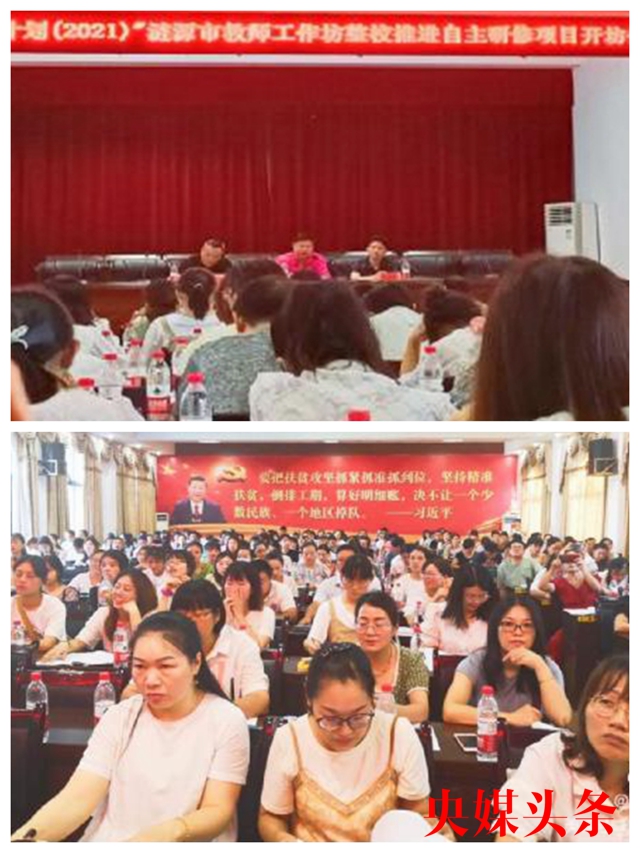 7月12日,涟源市教研师资培训中心在多功能报告厅举行“国培计划2021”涟源市教师工作坊整校推进自主研修项目开坊仪式。本项目研修对象包括全市中小学、幼儿园16个工作坊全体学员,所有工作坊分四批举行。