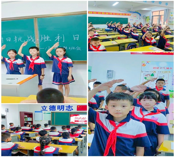 教室里,全校学生在典礼结束后,由班主任组织下进行《抗战胜利》为主题的第76个全国抗战纪念日“开学第一课”,通过PPT和视频向学子们介绍了卢沟桥事变、“九一八”事变、南京大屠杀等著名的历史事件,让孩子们义愤填膺;看到抗战胜利的历史性时刻的无比激动;再看看“中国的今天”,看到中国走向富强民主文明的喜悦,明白了自己当下的责任。在各班感受环节中,学子们纷纷表态:“爱国,我们要这样做:无任何时,热爱祖国!忠于祖国!永远记住自己是中华儿女,是中国人!传承红色精神,争做能够担当民族复兴大任的时代新人。