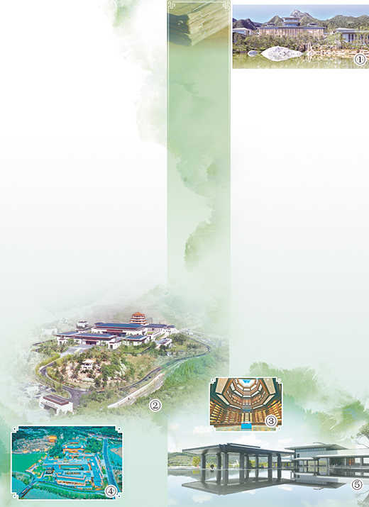 | 图①:西安分馆文济阁。 本报记者 张丹华摄 图②:中央总馆文瀚阁外景。 本报记者 陈 斌摄 图③:中央总馆文瀚阁文瀚厅。 本报记者 陈 斌摄 图④:俯瞰杭州分馆文润阁。 林作祯摄 图⑤:广州分馆文沁阁。 新华社记者 卢汉欣摄 |