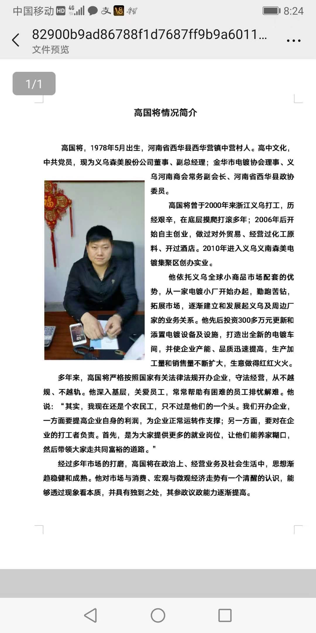 央媒头条河南西华讯:编辑(张清兵)2000年在义乌务工,2006年开始自主创业,曾经从事外贸、化工、酒店等项目,2010年至今进入义乌森美电镀,创业初有成效的他,时刻牵挂着家乡的父老乡亲,能为家乡发展助一臂之力是这位30岁年轻小伙的夙愿。经过自己不懈的打拼,2017年成功当选县政协委员。