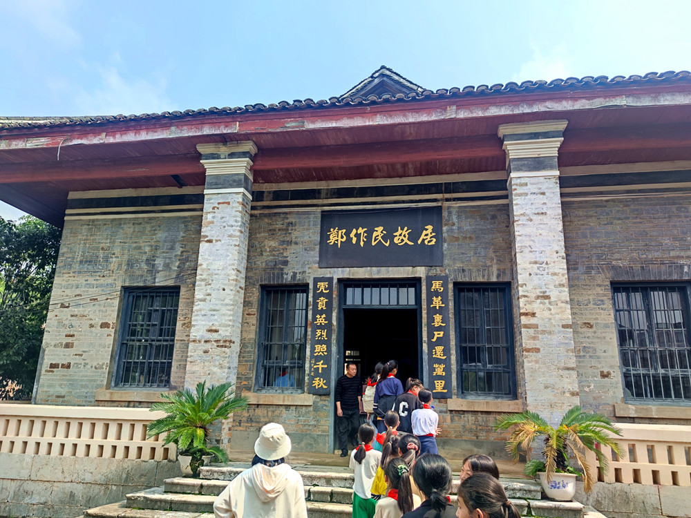 到达新圩镇郑作民故居,队伍分批开展研学活动。同学们聆听了郑作民烈士后辈的讲解,详细了解了郑作民的英雄事迹,在郑作民的追悼会上,毛泽东、周恩来、朱德分别题写挽词:“尽忠报国”“为国捐躯”“取义成仁”。切身感受了革命烈士的爱国精神。
