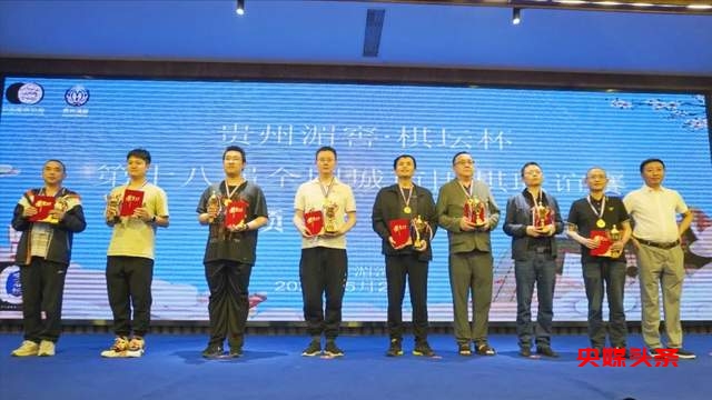 贵州湄窖酒业有限公司董事长、遵义市棋类协会主席陈长文为特邀组前8名选手:朱良均、李建国、田钧、盛况伦、刘伟中、王翔坤、王本群、冯继宁颁奖;
