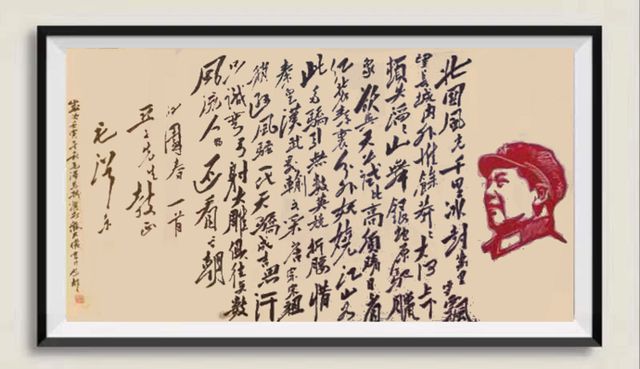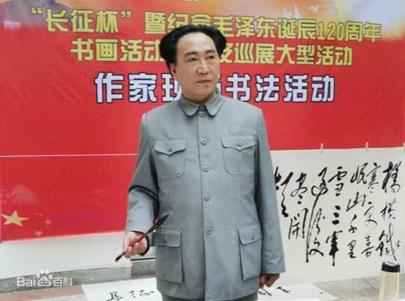 在文革前他就酷爱“毛体”书法,在踏上扮演毛泽东演艺之路后,更加喜欢“毛体”书法。坚持40余年研习毛体书法及草、行、隶、篆、楷各体书法艺术,部分作品被相关领导、著名专家,学者以及李纳、曹志斌、中央警卫大队毛泽东卫队长陈长江、贺龙元帅警卫长张秀德、原四川省委副书记汪有根、四川省政协副主席何志尧、原成都军区政委中将张少松、中科院首席地质专家张文敬,中国科技创新战略与发展研究中心秘书长孙良迎,著名学者美国国际文化学院院长诸成炎,香港著名慈善皇后赵曾学韫女士,香港花旗银行副行长苏智恒先生,台湾企业家黄朝兴、韩国企业家金善玉、金光日、安大英等,中国历史文化传承与发展联合会、美国国际文化学院以及部分红色革命纪念馆、四川省红色收藏家协会,香港、台湾以及韩国、美国国际友人均有收藏;作品参加了美国、泰国的书法展出并被主办方收藏。