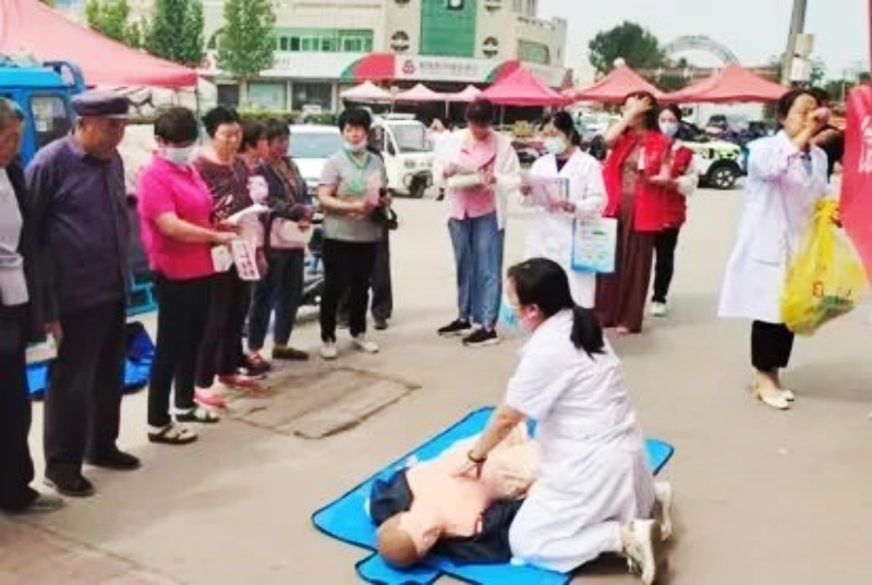 随后,医护人员在街道人口密集场地向广大群众和家长们讲解了应急救护的基本技能,用人偶道具通过判断、呼救、放置体位、腹部按压、人工呼吸等几个步骤来进行心肺复苏模拟,从而提高大家在溺水等紧急情况下的自我救助能力。
