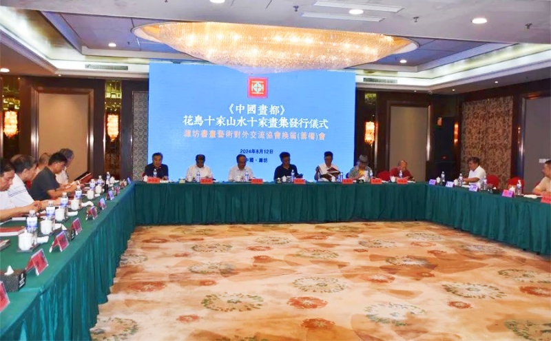 央媒头条山东讯(记者 谭佃贵 张兆伟 报道)2024年8月12日,中国画都花鸟十家山水十家画集发行仪式在潍坊市金茂国际大酒店举行,此次活动汇聚三十余位潍坊书画届翘楚名家。