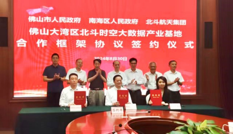 本网广东讯(记者 陆丽萍 张兆伟)8月30日,佛山市人民政府、南海区人民政府与北斗航天卫星应用科技集团(下称“北斗航天集团”)正式签订战略合作框架协议,共同推进大湾区北斗时空大数据中心暨产业合作基地项目建设。
