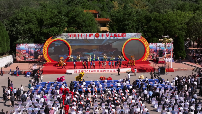 本网山东讯(记者 谭佃贵 通讯员 刘瑞华 赵晨旭)9月22日,潍坊市中国农民丰收节全市主场活动在临朐县石门坊景区广场开幕。精彩文艺演出、项目签约仪式、潍坊市乡村振兴地域品牌颁奖仪式、潍坊市粮食生产先锋人物颁奖仪式、潍坊市爱潍有为“新农人”颁奖仪式以及乡村振兴地域品牌展、非物质文化遗产展等多项展览隆重亮相。
