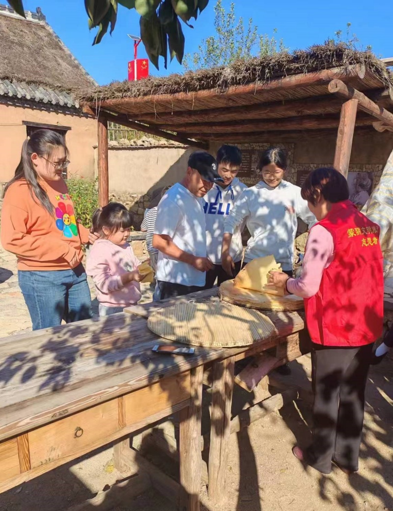 然而,文旅寻根,何如培根固元?山东省蒙阴第一中学趁着国庆放假期间,安排学生进行“家乡文化生活现状调查”活动,解答了这一困惑。节假日,让学生参与竹编活动,传承竹编工艺的研习,培养学生精细、专注的科技思维素养;让学生深入社区图书管理项目,让书香浸泡青春的灵魂,感受乡土文化的魅力,思考乡土重建的使命;让学生在乡村大舞台上起舞翩翩,吸纳山间四野之清风,博取俗雅共赏之娱乐;让学生参覌沂蒙六姐妹煎饼店,耳濡沂蒙红色历史之灿烂,目染沂蒙山乡之巨变;让学生捧读宗谱,夜覌神圣的龙脉,昼读千年的家史,自豪与羞愧间豪情顿起。难怪,蒙山古村落一老书记说,蒙阴一中国庆作业安排得好,文旅寻根,何如培根固元?