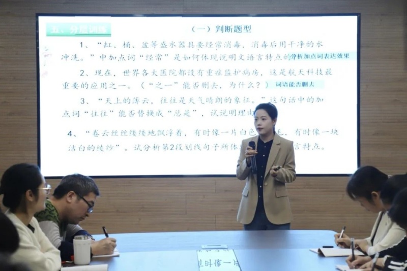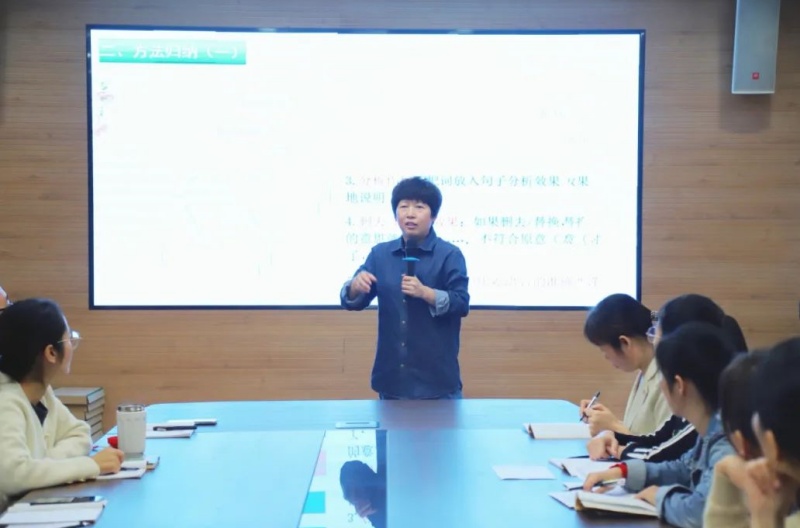 最后,她鼓励全体语文组教师继续深耕细研,精准提炼,努力实现“语文学科专题全部有技法,各技法全部实操运用性强,人人会讲各个专题,各个专题人人会讲”的科研目标。