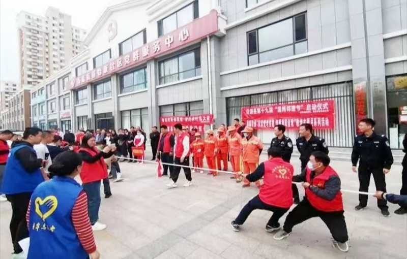 沂源县南麻街道怡康社区“邻居节”拔河比赛现场