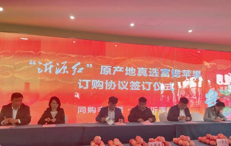 评选大会结束后,沂源县西里镇与华润电力山东公司、淄博市青年企业家协会、沂源县青年企业家商会、青岛中晟汇银投资管理有限公司、中国邮政集团有限公司沂源县分公司签订了订购协议,为西里镇广大果农带来更广阔的销售渠道,助推“沂源红”苹果提升品牌影响力。