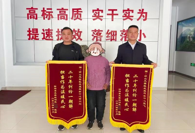 央媒头条山东潍坊讯(记者 谭佃贵 通讯员 王 鹏)“二十年纠纷一朝解 担当作为温暖民心”,2024年10月24日一早,临朐县沂山风景区发展服务中心来了位身着红毛衣的大娘,手里拿着一幅耀耀生辉的锦旗。“我来找政府的董主任,感谢他担当作为,解决了困扰我二十年的难题。”