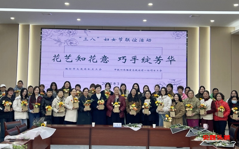 央媒头条山东潍坊讯(于忠孝 通讯员 张布伟 孟钰娴 胡晨阳)2025年3月7日,中铁四局潍(坊)宿(迁)高铁项目工会与潍坊市交通运输局机关工会联合开展的“书香花香竞芬芳,交通巾帼绽芳华”主题活动在中铁四局潍宿高铁站前一标项目潍坊制梁场顺利举行。双方近50余名女职工参加活动。