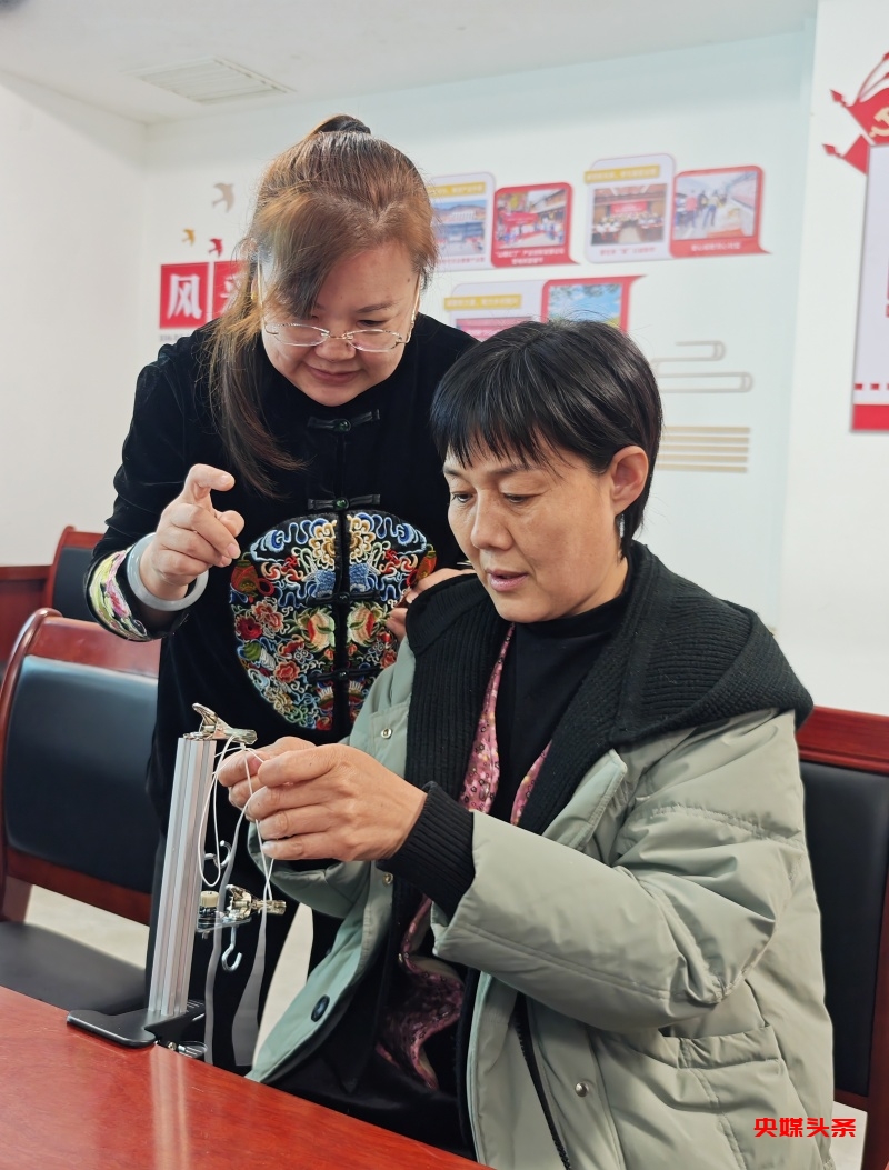 参加活动的女性,还跟蒋静老师学起了用红蓝双色绳编织手链。工作台上,一手一线,来回缠绕、穿梭,呈现出一条条精致的手链造型,再串接一颗红色或者白色的珠子,活脱脱一条“灵珠魔丸手链”。她们把手链戴在手腕上,神气十足,体验非遗手造有收获更有成就感。基地还研究小学生需要,结合正热播的《哪吒之魔童闹海》,精心设计了“灵珠觉醒·春日修仙录”系列课程,让学生体验“非遗技艺·神话叙事·农耕科学”的跨界修炼之旅。