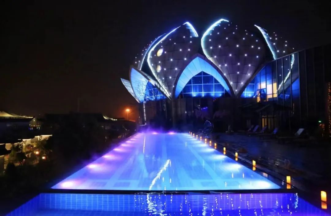 泓庐SPA精品酒店,是景区东情西韵中富有中国传统韵味的一座温泉温泉园林式建筑。依泉而建,溪水环绕,把中国传统文化的博大、善美、返璞归真融入建筑内含,营造出一种上善若水、归隐室外的意境之美;