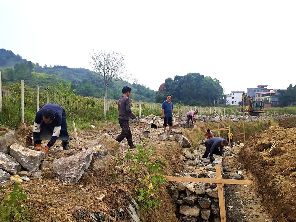 “这口山塘周围护砌、清淤蓄水后,100余亩旱田旱涝保收就再也没问题了。”8月30日,新隆镇城塘溪村多年未维护的山塘,村民正在用石块在山塘周围护砌中。至此,新田县新隆镇城塘溪村投入58万余元的山塘维护、兴修机耕道、防火塘等项目维修工程全面启动。