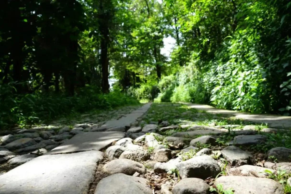 走在古旧的茶马古道上,经过千年风雨的洗礼,石板在太阳光下发光发亮。在一块石板上,隐约可以看到还刻有一个棋盘;这是马帮在运输途中休息时,可以就地蹲下“杀一盘”。
