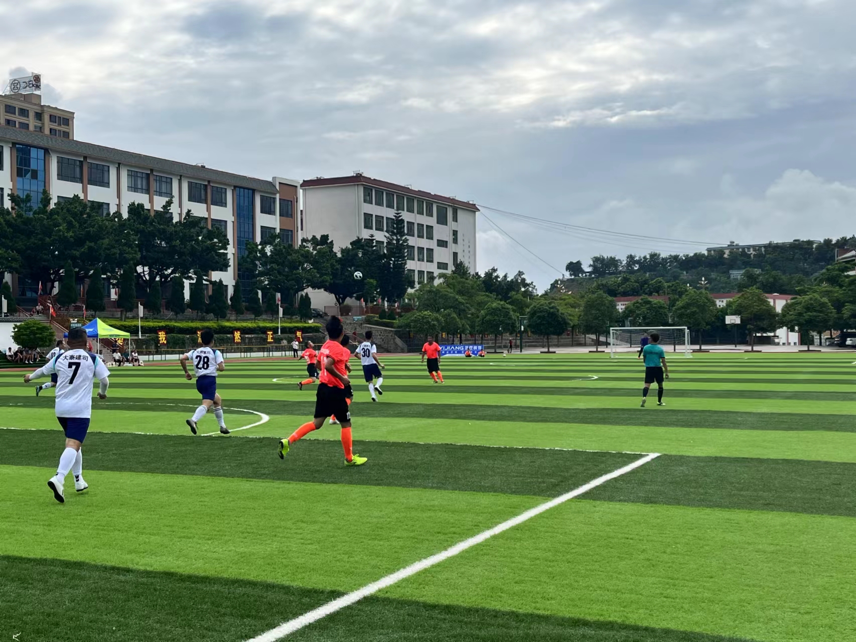 次日,在云县爱华镇爱华完小举行的云县 2023 年暑期“云州杯”七人制足球赛也鸣哨开赛,来自临沧市各行各业的19支参赛球队在绿茵场上展开激烈角逐,队员们凭借娴熟的脚法、默契的配合,通过停球、带球、传球、射门等技巧,双方你追我赶,实力不相上下,现场加油助威声不断。