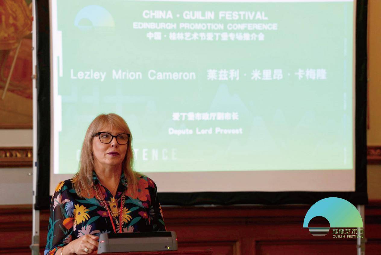 首先,爱丁堡副市长莱兹利·米里昂·卡梅隆女士首先致欢迎词,卡梅隆副市长表示中国是爱丁堡的重要合作伙伴,更是苏格兰的重要合作伙伴。爱丁堡和中国的关系不只限于商贸合作,更体现在人与人的链接之上。中国和苏格兰都更加关注旅游潜力和更高的教育水平。爱丁堡意识到文化对于城市发展的重要性,艺术作为重要的文化载体,在其中发挥了不可忽视的重要作用。最后,卡梅隆市长对爱丁堡艺术节和桂林艺术节致以真挚祝福和诚挚邀请。