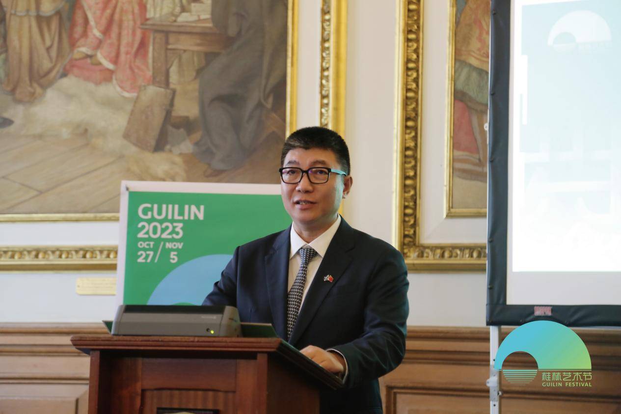 此次专场推介会得到了中国驻爱丁堡总领事馆的高度重视与大力支持,中国驻爱丁堡总领事张飙先生在会上致辞,其表示当下时节正好,正是爱丁堡艺术氛围最浓的时节。爱丁堡是艺术名城,文化名城,拥有悠久的艺术节历史,领事倡议双方大力开展艺术节的经验交流。此次活动正是双方民间友好丰硕成果的证明。桂林作为重要的旅游城市,风景秀丽,文脉深远。桂林以山水为舞台,以人文为源头,开展桂林艺术节,进行中外交流。面对正在进行的爱丁堡艺术节,和即将到来的桂林艺术节,总领馆将为两个城市,两个艺术节的交往合作提供全力支持。