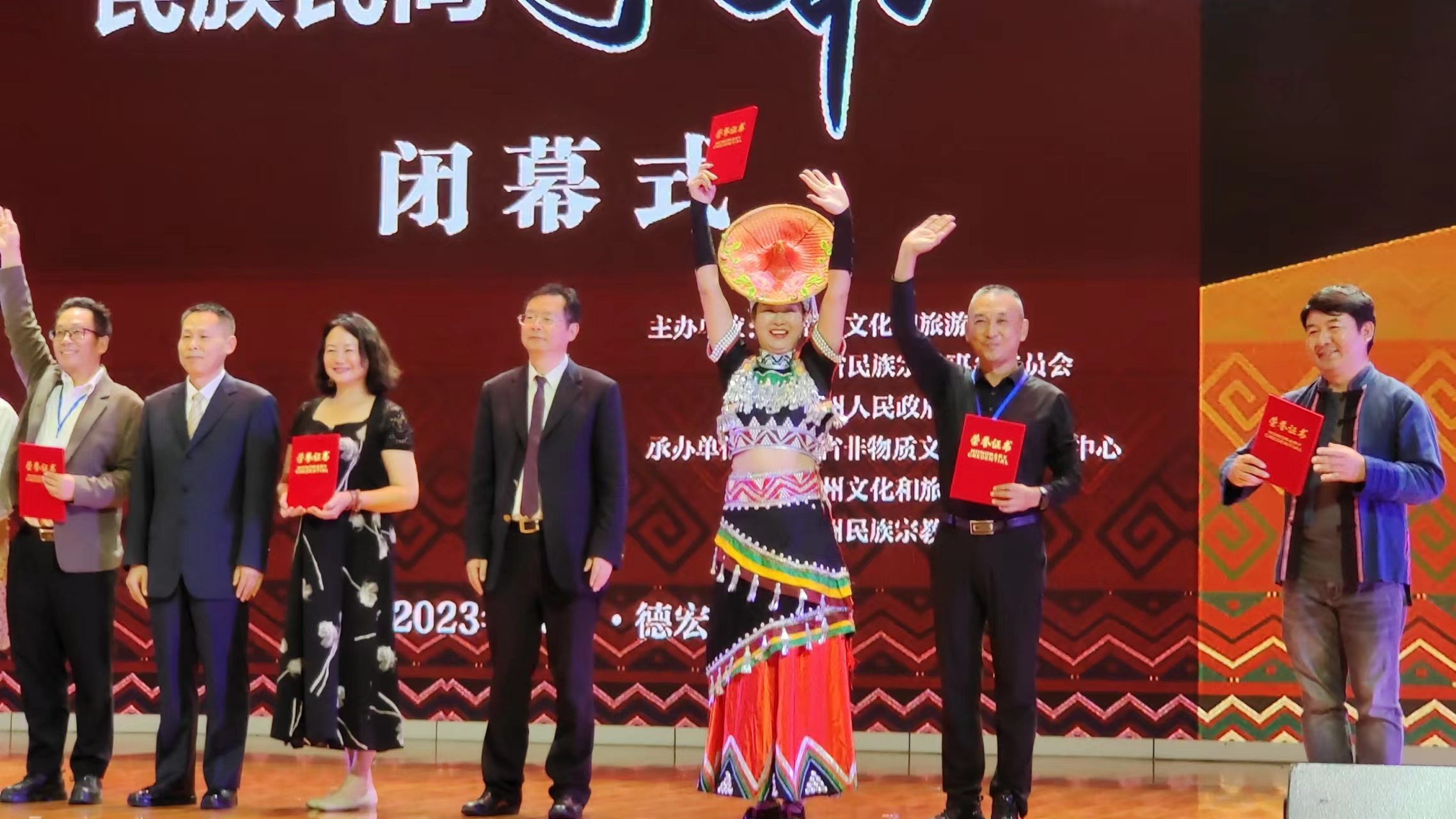 自10月23日以来,来自全省16个州市20多个民族的1000余名非遗传承人、民间艺人、基层文化工作者带着他们精心整理编创的70个音乐、舞蹈、器乐节目,在德宏州芒市会堂为争夺“云南省民族民间歌舞乐展演奖”展开角逐,云县代表队全体演职人员经过数月艰苦排练,终于在全省大舞台获得大奖。