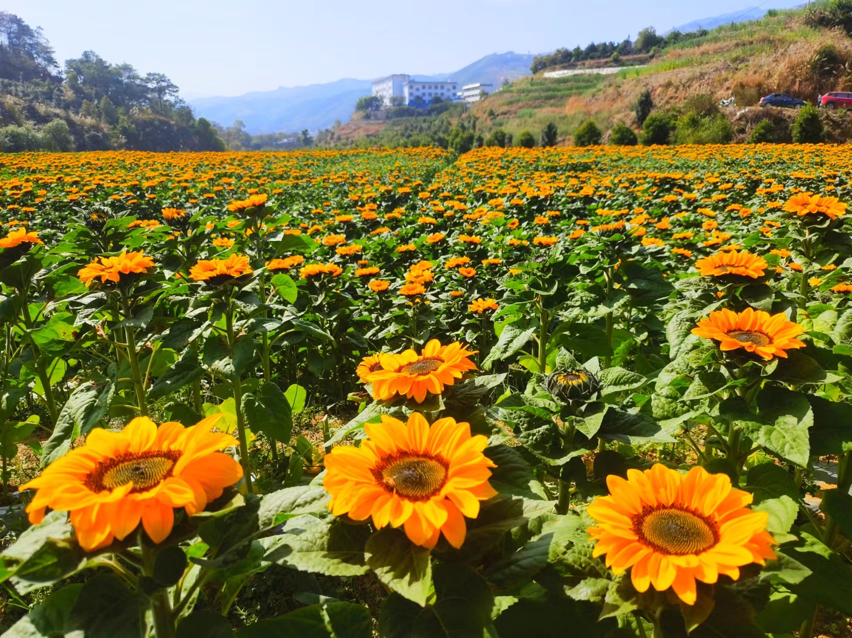 春节期间,临沧市云县农业投资公司在位于永胜完小上方的现代农业产业园冬季蔬菜花卉种植园新种植的128亩观赏型向日葵全面开放,云县城区和周边县(区)游客三三两两纷纷前往拍照、采摘,成为今年春节云县的新晋火热打卡点。